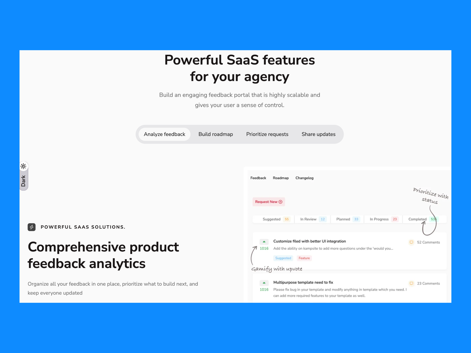 - Entrepreneurs – Launch your own SaaS feedback and feature request platform.